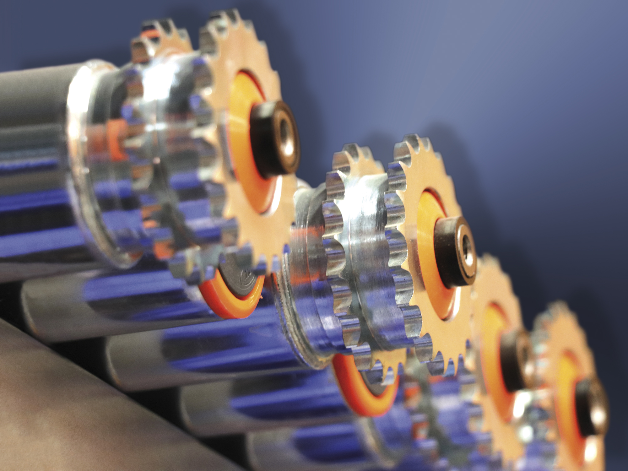 Les moteurs sont disponibles avec les roulements rigides à billes EMQ de LFD à trois plages de vitesse différentes : 17, 30 et 60 m/min. Les rouleaux moteurs peuvent être équipés d'un revêtement en caoutchouc, en PU ou en PVC. Pour des applications en courbes, les rouleaux sont équipés d’éléments en plastique coniques.